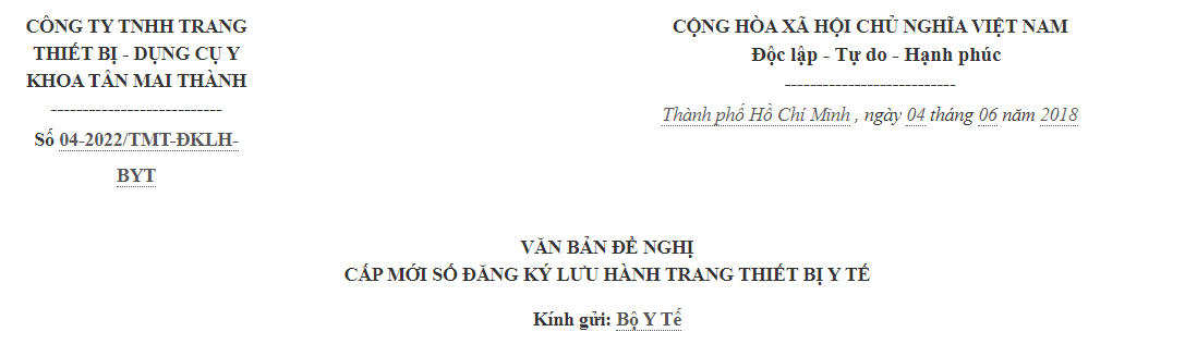 - Loại trang thiết bị y tế: TTBYT Loại D