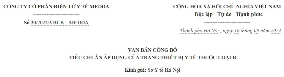 Ngày 25/09/2024 - 02:09Trang thiết bị y tế công bố tiêu chuẩn áp dụng: