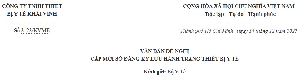 - Loại trang thiết bị y tế: TTBYT Loại D