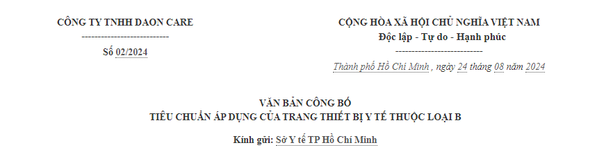 Ngày 16/09/2024 - 10:09Trang thiết bị y tế công bố tiêu chuẩn áp dụng: