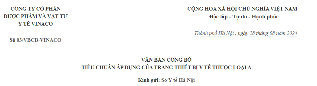 Trang thiết bị y tế công bố tiêu chuẩn áp dụng: