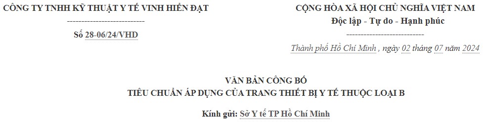 Ngày 25/09/2024 - 01:09Trang thiết bị y tế công bố tiêu chuẩn áp dụng: