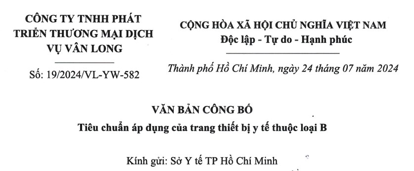 Trang thiết bị y tế công bố tiêu chuẩn áp dụng: