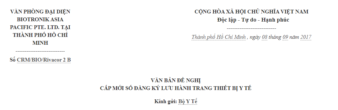 + Hồ sơ phải được dịch sang tiếng Việt và tuân thủ các quy định về pháp lý của Bộ Y tế Việt Nam.