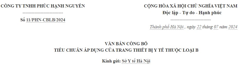 Ngày 13/09/2024 - 01:09Trang thiết bị y tế công bố tiêu chuẩn áp dụng: